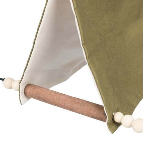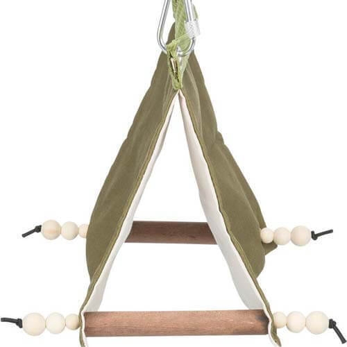 Skab et lille fristed til dine undulater med det ophængte telt i bomuld og træ. Dette charmerende og hyggelige telt er specielt designet til at give dine undulater et trygt og komfortabelt sted at slappe af og hvile.