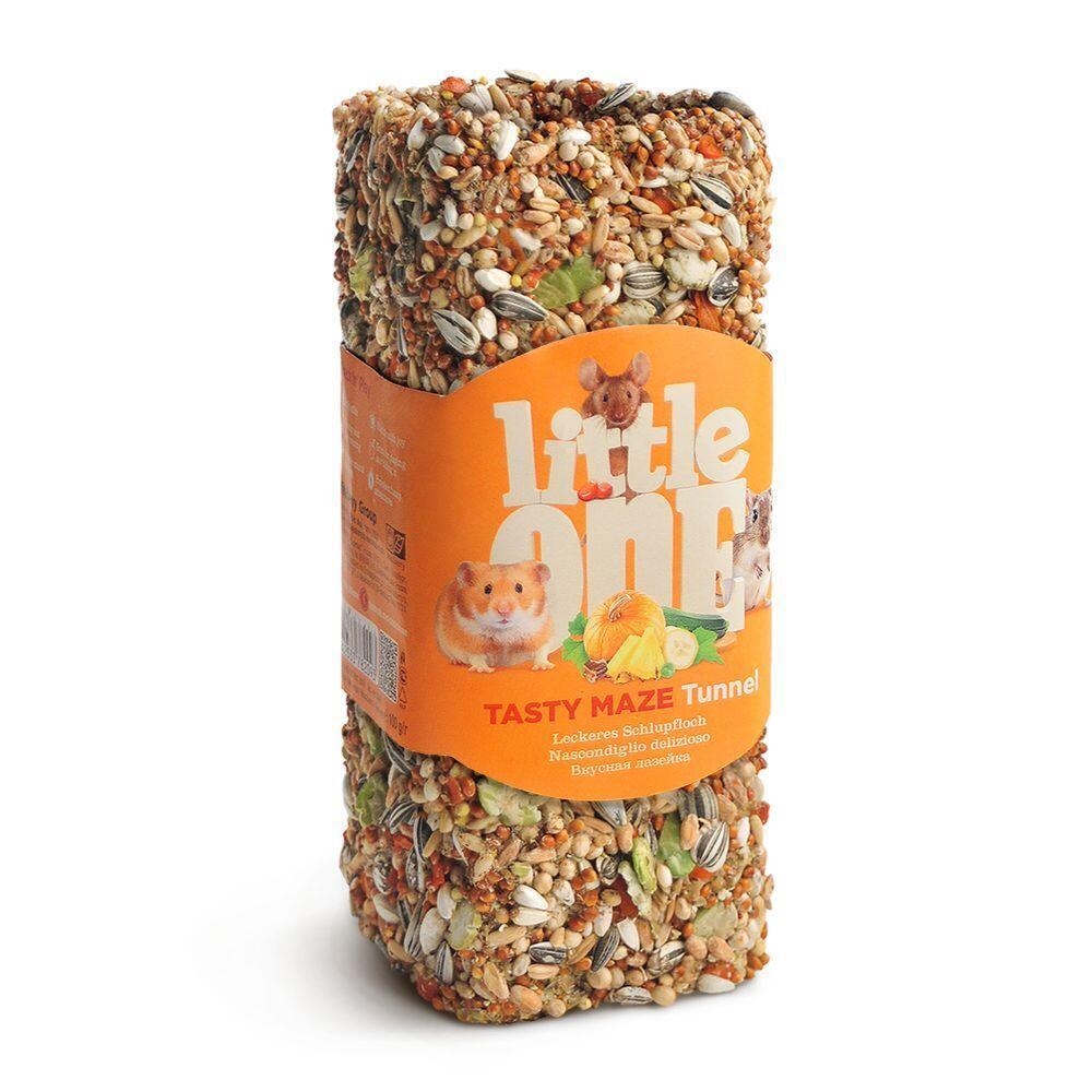 Den lille tunnel er et velsmagende fuldt spiseligt legetøj til hamstere, rotter, mus og ørkenrotter dækket med sprøde puffede korn, velsmagende tørrede frugter og forskellige grøntsager.