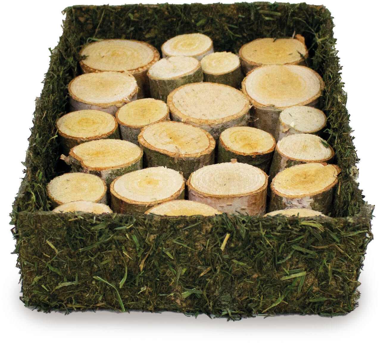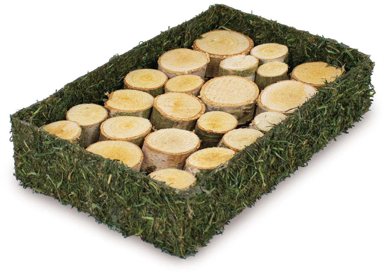 Placer små snacks mellem træstubbene eller inde i fibermåtten, og lad dit kæledyr udfolde sine naturlige søgeinstinkter. Hele kassen er spiselig og fiberrig, hvilket gør den både sund og sikker. Kan bruges med eller uden opsyn.
