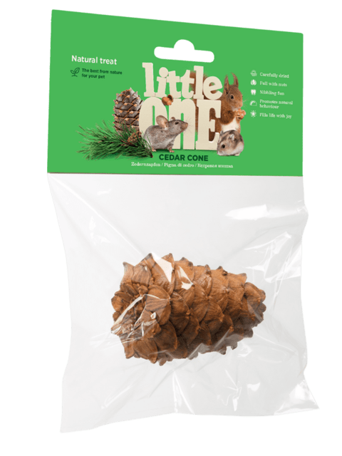 Little One Grankogle er et naturligt og stimulerende aktiveringsprodukt til gnavere og kaniner. Grankoglen fungerer både som gnavelegetøj og naturlig snack og understøtter dyrets naturlige behov for at gnave, samtidig med at den bidrager til naturligt tandslid. Når dyret arbejder med koglen, stimuleres både krop og sind.