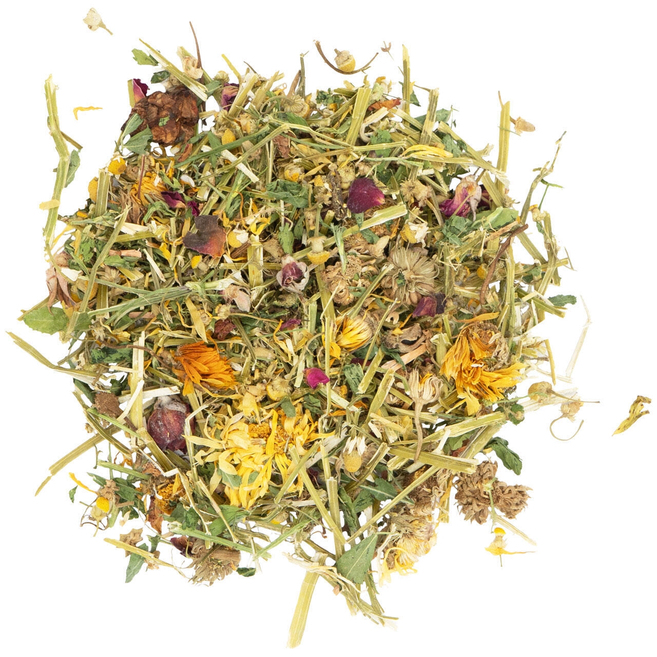 Lucerne, morgenfrueblomster (23 %), kamilleblomster (16 %), rosenblade (13 %), persille.